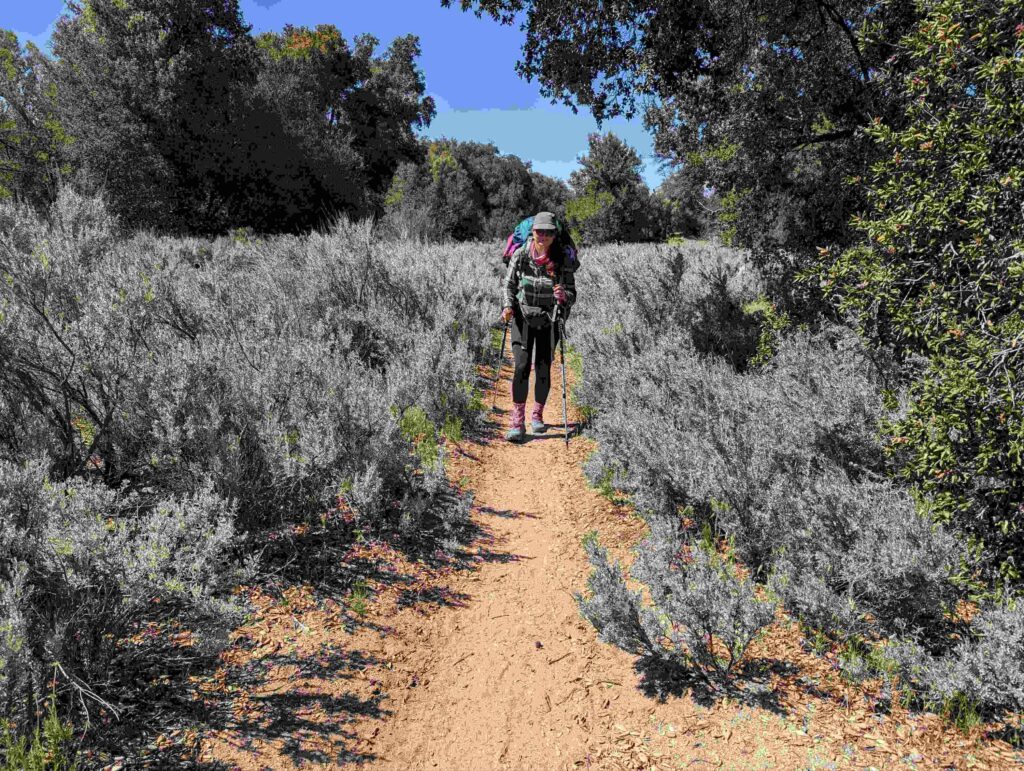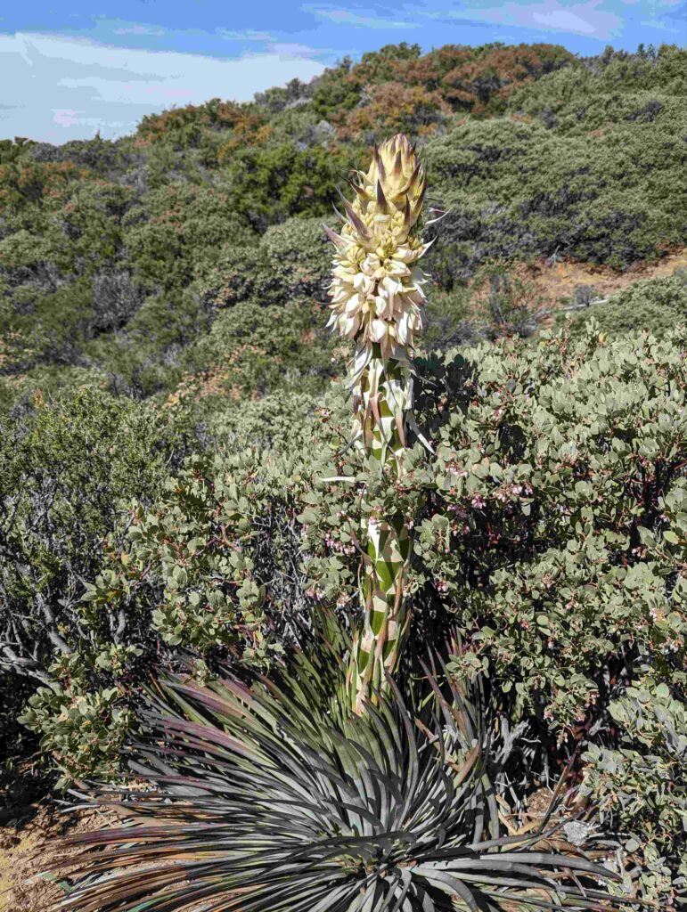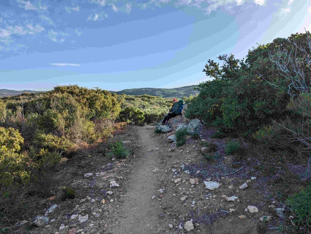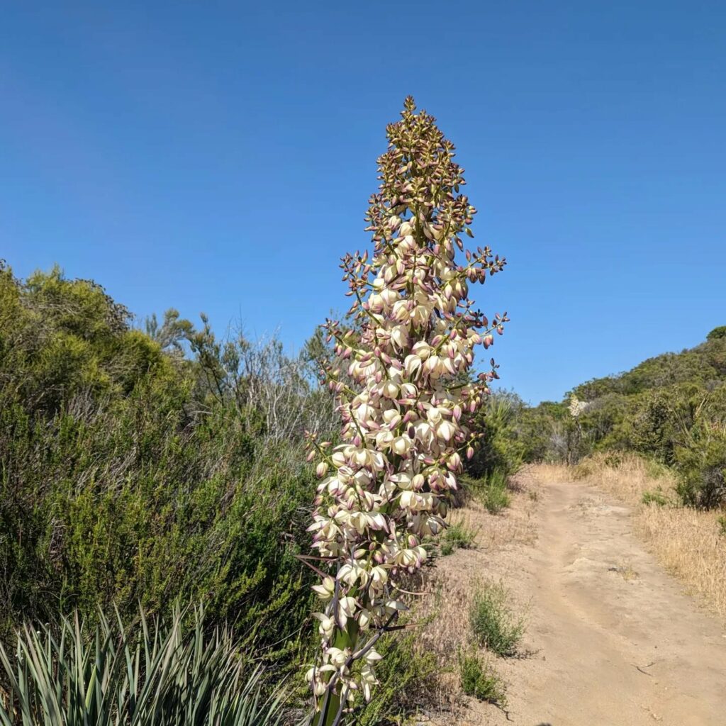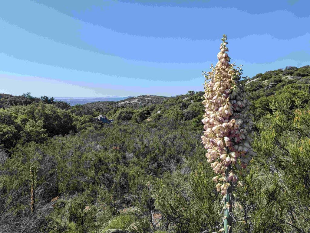 Am 4. Tag haben wir uns leichte 15km vorgenommen, die wir zur Hälfte schon bis 9 Uhr zurück gelegt haben. Es geht einfach viel einfacher, wenn es nicht so heiß ist. Wir treffen viele neue Leute. Wer Einsamkeit sucht, ist hier fehl am Platz. Social overflow sage ich nur! Es gibt wieder grandiose Aussichten und Blumen zu sehen. Ein Stück geht es auch durch einen Pinienwald, der so gut duftet, dass ich Pause mache und tief einatme. Gegen 13.30 Uhr kommen wir am Zeltplatz an und laufen Jessy über den Weg (man sieht sie schon von Weitem mit ihren pinken Haaren). Wir schlagen unsere Zelte auf ihrem Platz auf und genießen eine schöne Dusche. Danach kaufen wir im General Store ein und wollen unsere Power Banks im Cafe aufladen. Leider hat es schon 16 Uhr geschlossen. Bummer! Nach und nach trudeln mehr Hiker auf unserem Zeltplatz ein. Am Ende sind wir 10 Leute. Ich krieche schon 20 Uhr ins Zelt. Morgen wollen wir 21km wandern und schon 5.30 Uhr aufbrechen. Jeden Tag etwas früher. Wir haben nun Meile 41,5 (ca. 66km erreicht). Meine Füße sind eine einzige Blase. Jessy verarztet mich und ich werde ab jetzt 2 paar Socken tragen – hilft etwas. Die Jungs sind nun schon bei Meile 73 – einfach verrückt. Ich bin gespannt, wie die nächsten Tage werden. 80% der Zeit frage ich mich, was ich hier eigentlich mache. Aber dann kommt eine schöne Aussicht, ein netter Mensch, eine besondere Blume oder das Camp und die Zweifel sind vergessen. Ich hoffe, mit der Zeit ist es weniger anstrengend und vor allem, dass meine Füße sich bald erholen.