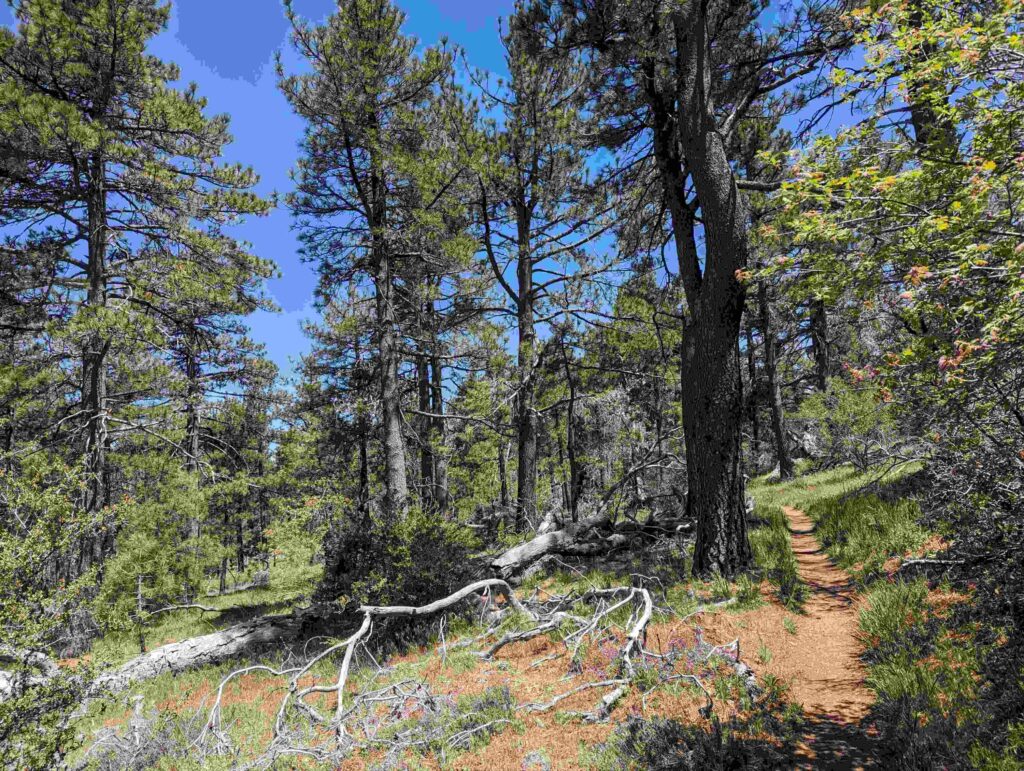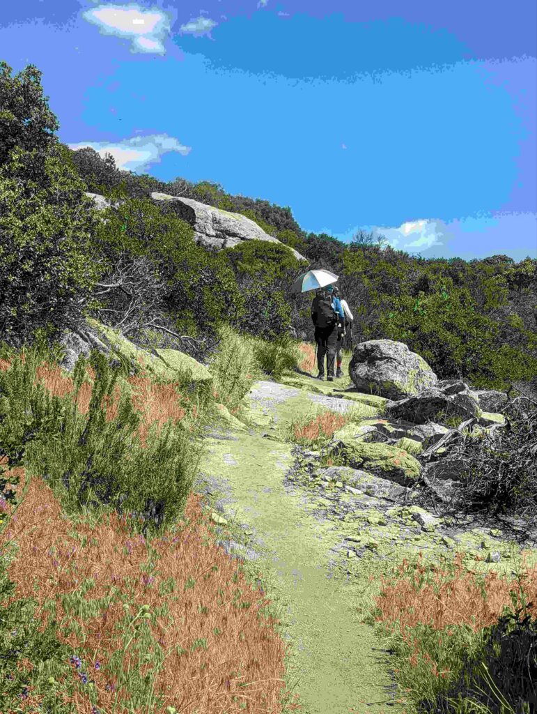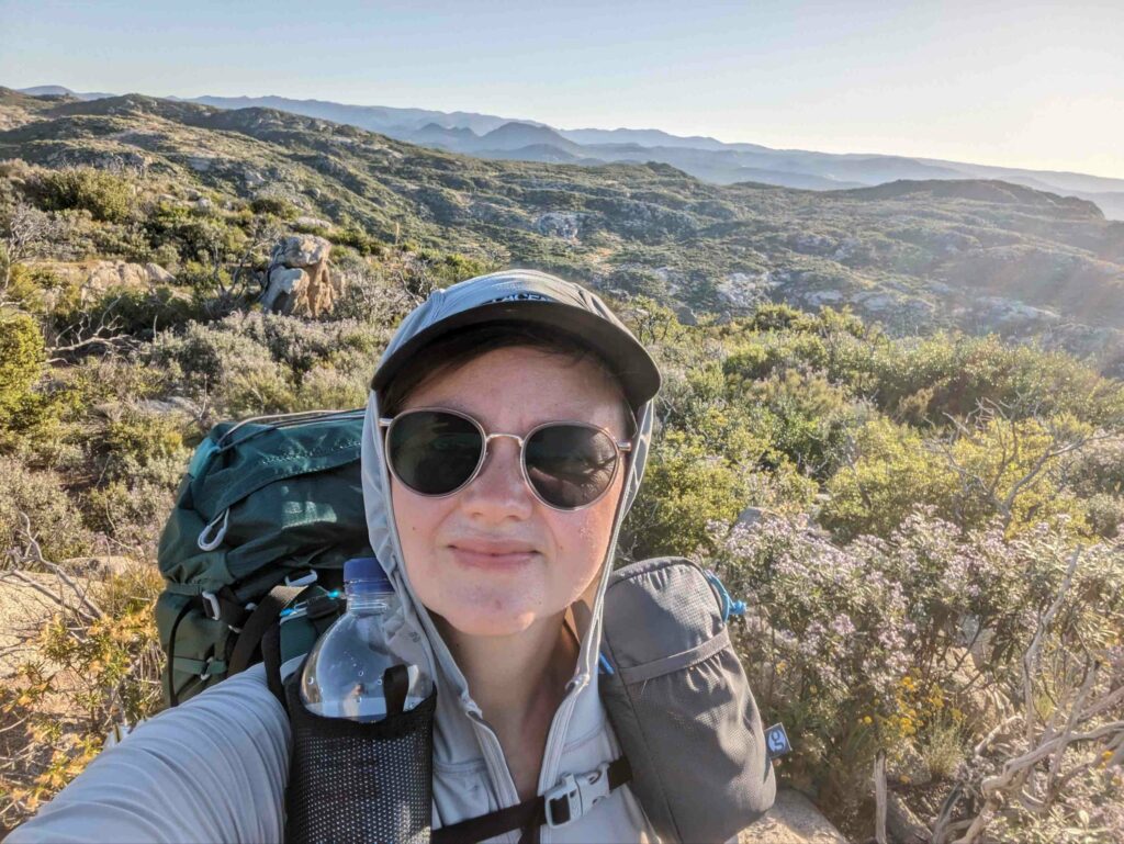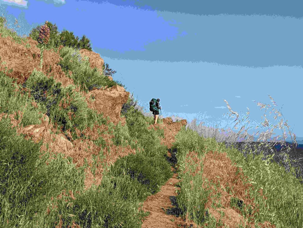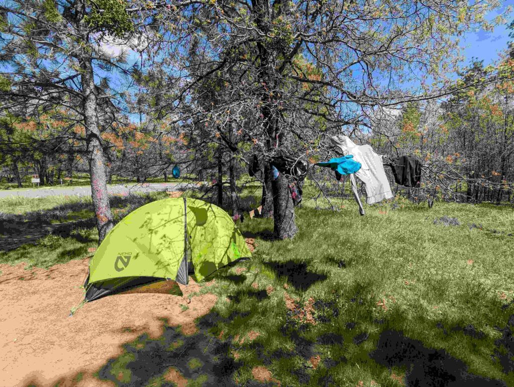Am 4. Tag haben wir uns leichte 15km vorgenommen, die wir zur Hälfte schon bis 9 Uhr zurück gelegt haben. Es geht einfach viel einfacher, wenn es nicht so heiß ist. Wir treffen viele neue Leute. Wer Einsamkeit sucht, ist hier fehl am Platz. Social overflow sage ich nur! Es gibt wieder grandiose Aussichten und Blumen zu sehen. Ein Stück geht es auch durch einen Pinienwald, der so gut duftet, dass ich Pause mache und tief einatme. Gegen 13.30 Uhr kommen wir am Zeltplatz an und laufen Jessy über den Weg (man sieht sie schon von Weitem mit ihren pinken Haaren). Wir schlagen unsere Zelte auf ihrem Platz auf und genießen eine schöne Dusche. Danach kaufen wir im General Store ein und wollen unsere Power Banks im Cafe aufladen. Leider hat es schon 16 Uhr geschlossen. Bummer! Nach und nach trudeln mehr Hiker auf unserem Zeltplatz ein. Am Ende sind wir 10 Leute. Ich krieche schon 20 Uhr ins Zelt. Morgen wollen wir 21km wandern und schon 5.30 Uhr aufbrechen. Jeden Tag etwas früher. Wir haben nun Meile 41,5 (ca. 66km erreicht). Meine Füße sind eine einzige Blase. Jessy verarztet mich und ich werde ab jetzt 2 paar Socken tragen – hilft etwas. Die Jungs sind nun schon bei Meile 73 – einfach verrückt. Ich bin gespannt, wie die nächsten Tage werden. 80% der Zeit frage ich mich, was ich hier eigentlich mache. Aber dann kommt eine schöne Aussicht, ein netter Mensch, eine besondere Blume oder das Camp und die Zweifel sind vergessen. Ich hoffe, mit der Zeit ist es weniger anstrengend und vor allem, dass meine Füße sich bald erholen.