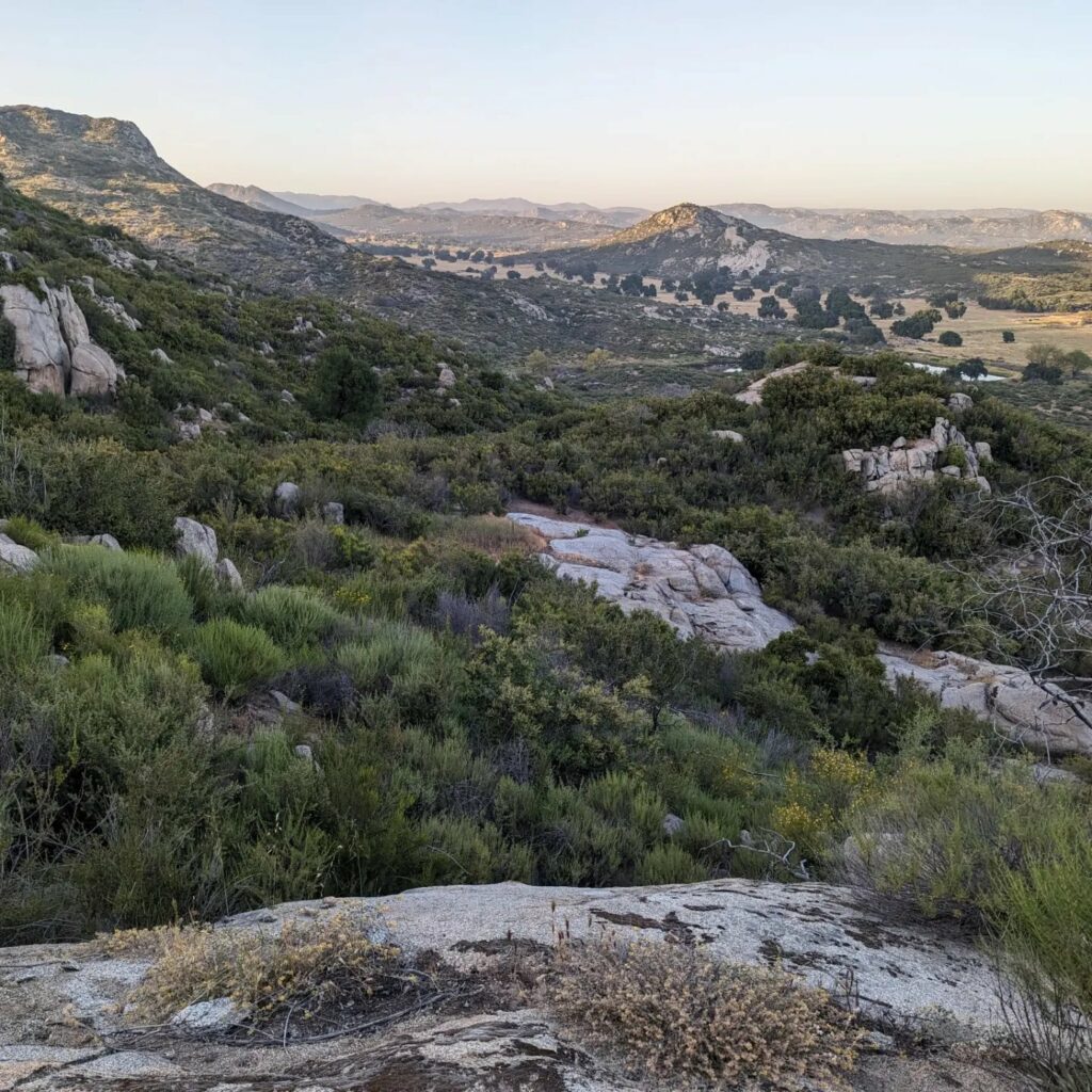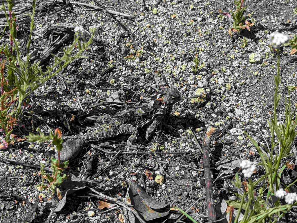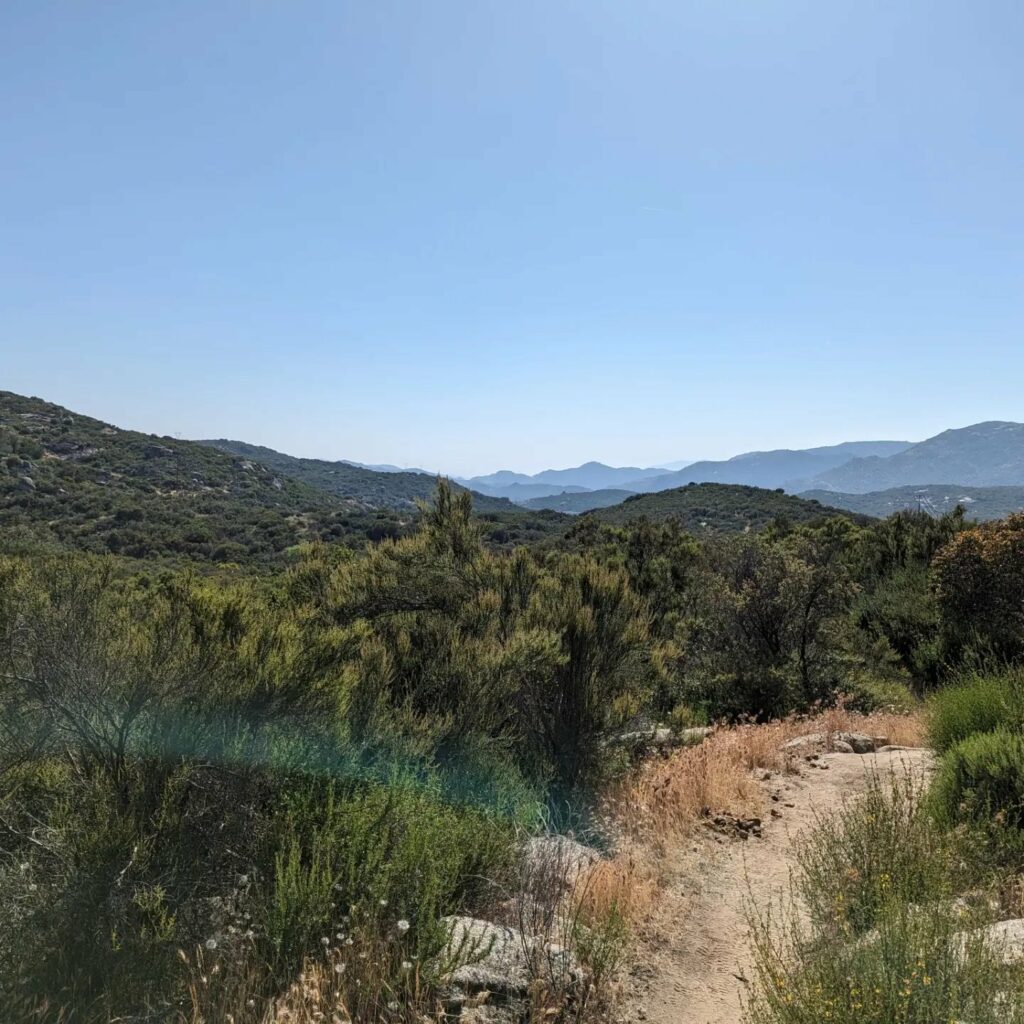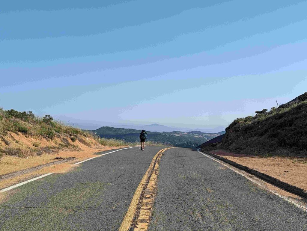 Für Manon und mich stehen heute knapp 21 km auf dem Plan. Wir wollen bis Mount Laguna kommen und dort duschen und einen Burger essen. Wir laufen getrennt, treffen uns aber immer wieder. Die Landschaft ist schön und ich bleibe immer wieder stehen, um die Aussicht zu genießen. Die kleinen Eidechsen flitzen nur so davon, wenn sie mich spüren. Außer eine Kurzhorn-Krötenechse, die mich nur ankuckt und keine Angst zu haben scheint. Auf dem Weg abwärts zur Hauser Creek kreisen Adler ganz nah. Ich kann sie fast berühren. Außerdem sehe ich noch eine Klapperschlange, die mich aber nicht weiter beachtet und weiter chillt. Ich würde wirklich gern mal eine klappern sehen! Am Hauser Creek treffe ich noch ein paar bekannte Gesichter. Da noch 10km vor mir liegen, kann ich schwer entspannen. Deswegen mache ich mich in der Mittagshitze an den 400hm Aufstieg. Kurze Zeit später stellt sich das als großer Fehler heraus und ich verstecke mich in jedem kleinen Schättchen und ruhe etwas um einige Meter weiter zu kommen. Puh, das war hart. Mein Trailname kann Tomate sein… Ungläubig sehe ich Shane und einen mir unbekannten Hiker vorbeisprinten. Deren Rucksäcke sind so winzig. Ich nehme mehr auf Tagestouren mit als die beiden auf der wochenlangen Tour… Als ich den See hinter einer Kurve endlich sehe, bin ich so erleichtert, dass ich trotz der Blasen losflitze. Schnell das Zelt aufgebaut und dann auf zur Dusche. Aber nein! Ich habe schon am 2. Tag einem Schuh verloren. Meine blasenübersäten Füße müssen leider in den Wanderschuhen bleiben. Die Dusche genieße ich trotzdem. Zurück am Zeltplatz ist neben anderen bekannten Gesichtern auch Manon eingetroffen. Sie hat mir eine Überraschung mitgebracht: Meinen Schuh!!! Große Freude! Das ist wohl dieses „The trail provides“ von dem ich immer lese. Abends essen wir im berühmten Malt Shop einen Burger und trinken Coca Cola. Die Jungs wandern an diesem Tag 36km – fast das Doppelte. Ich kann mir nicht vorstellen, wie das geht.