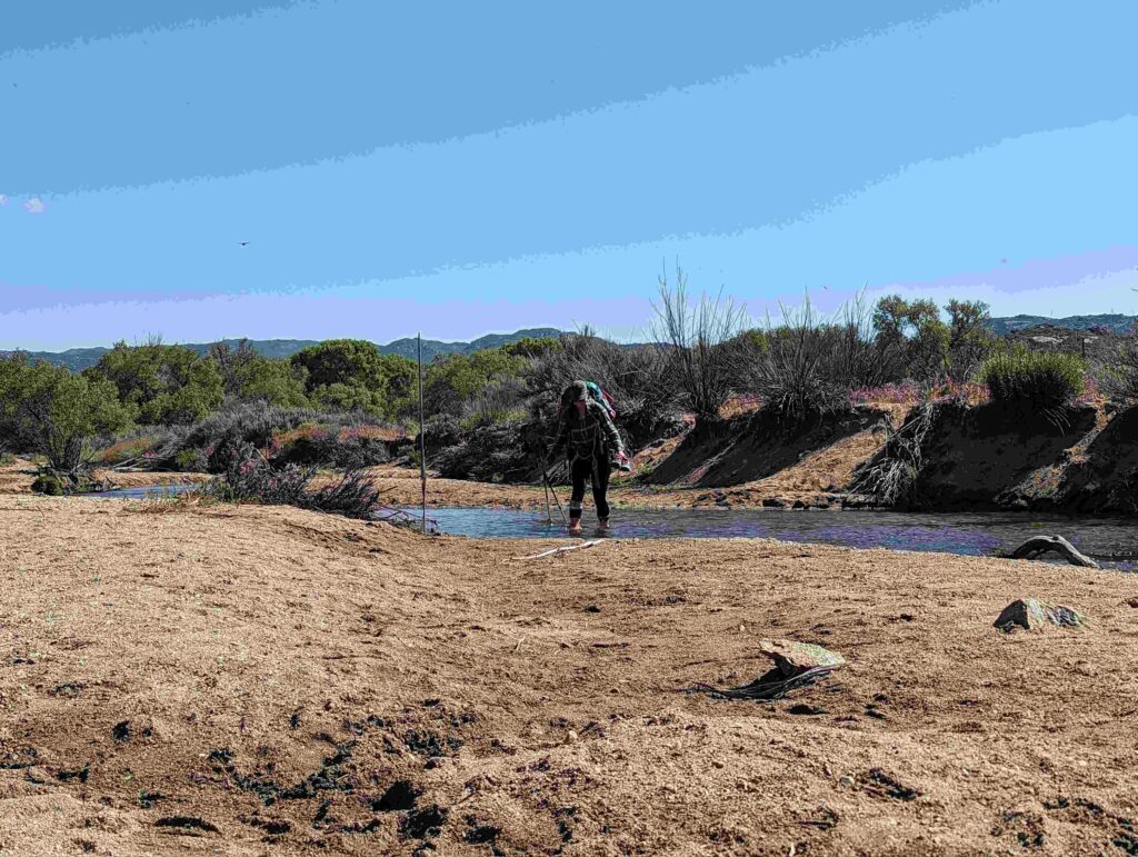 Am nächsten Morgen starte ich 6.15 Uhr. Es ist angenehm kühl und der Weg recht einfach. Drei Mädels (Tiny Tim, Bootsy und Jessy) überholen mich und helfen mir dann bei der ersten Flussdurchquerung. Ich halte meine Füße ins Wasser und mache kurz Pause. Dann gehts weiter zum Boulder Oaks Campground, wo wir Crash kennenlernen (auf der Fahrt nach Kalifornien hatte er einen Unfall). Einige Zeit später kommt Mr Sunflower. Kaum zu glauben, auch er ist einen Tag später als wir losgelaufen. Er muss gleich weiter, denn er will Jungs einholen. Männer… Bei der zweiten Flussdurchquerung lass ich die Schuhe an. Fühlt sich eigentlich ganz angenehm an. Ein langer Aufstieg in der Mittagssonne und die Blasen lassen mich stark am Vorhaben zweifeln. Aber auch der längste Anstieg ist irgendwann vorbei und ich komme an einem Fluss an, wo ich Manon schon von Weitem baden sehe. Wir bauen ein Zelt als Sonnenschutz auf und machen 2 Stunden Pause. Tiny Tim, Bootsy und Jessy sind auch hier – eine schöne Mädelsrunde. Nach der größten Hitze machen wir uns gegen 17 Uhr auf und wandern wenige Kilometer bis zu unserem Zeltplatz namens Fred Canyon. Neben den bekannten Mädels sind noch zwei andere hier (Pipes – spielt Dudelsack und Gill). In gemütlicher Runde kochen und quatschen wir bevor es in den Schlafsack geht und uns der Frosch in den Schlaf quakt.