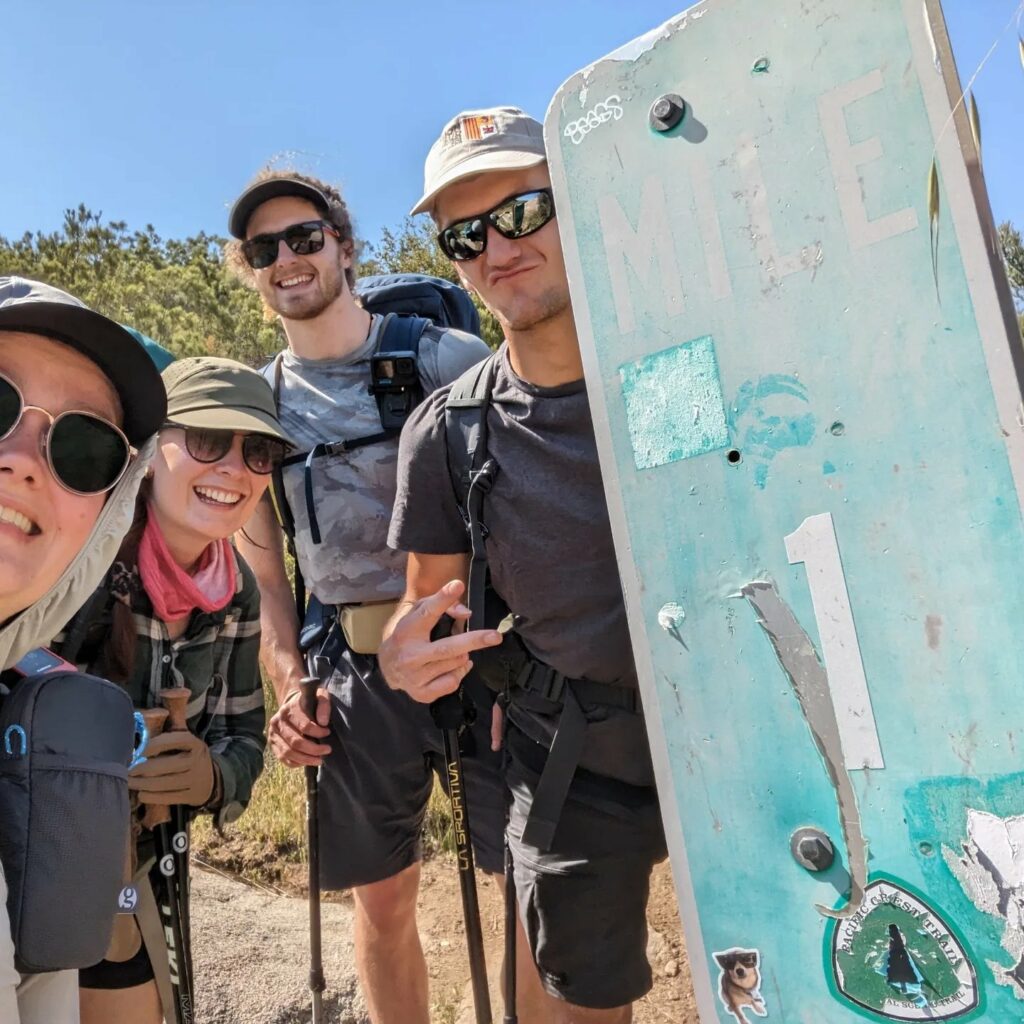 Dann geht es los. Endlich! Nach vielen Jahren Tagträumerei, einigen Monaten Vorbereitung und Startschwierigkeiten. Ein schönes Gefühl! Nach 0,6 Meilen machen wir Mittagspause am Cleef Campground im Schatten und verewigen uns an der Wand. Dann geht es richtig los – for real!