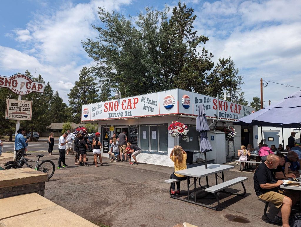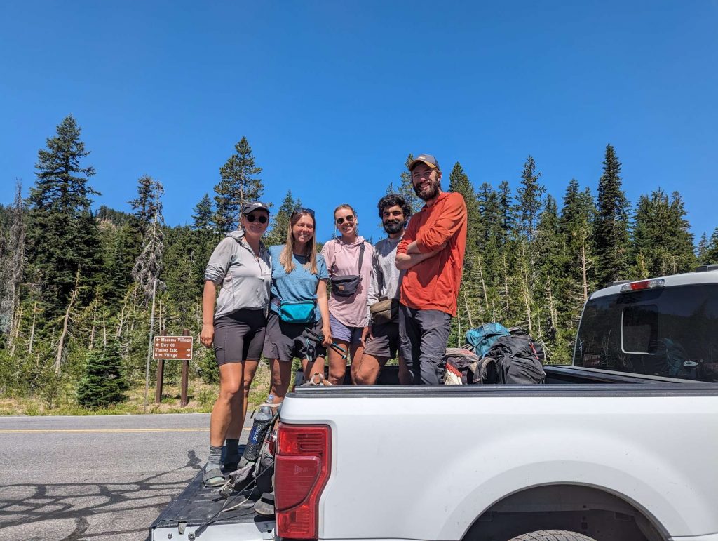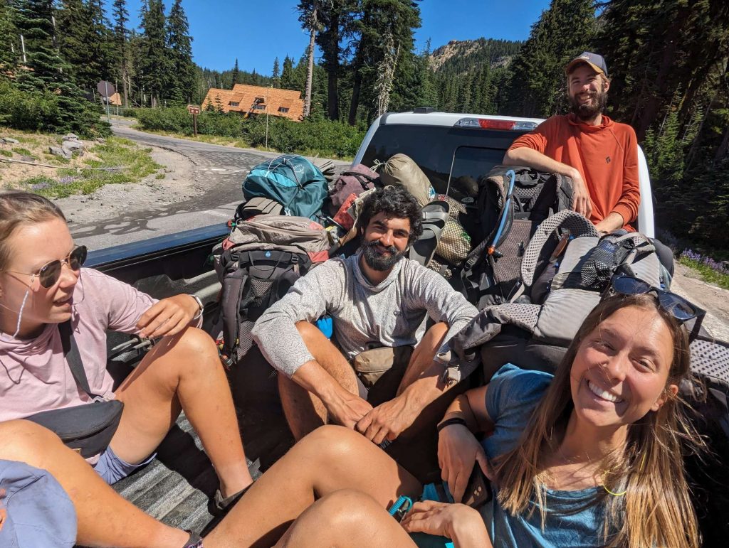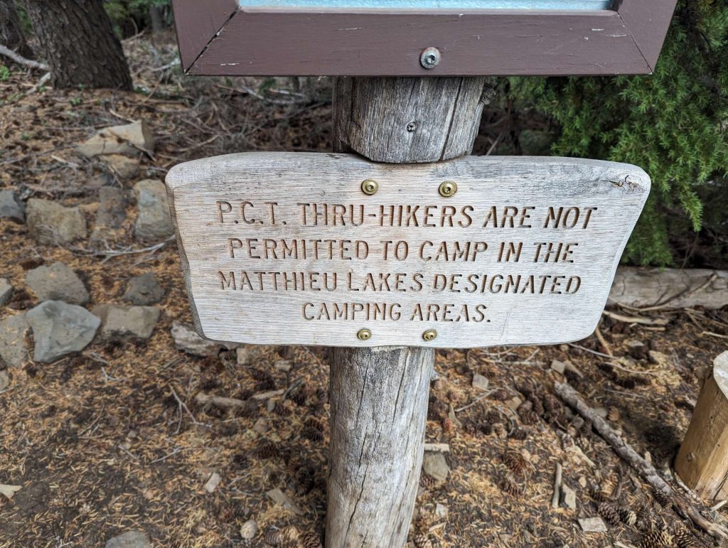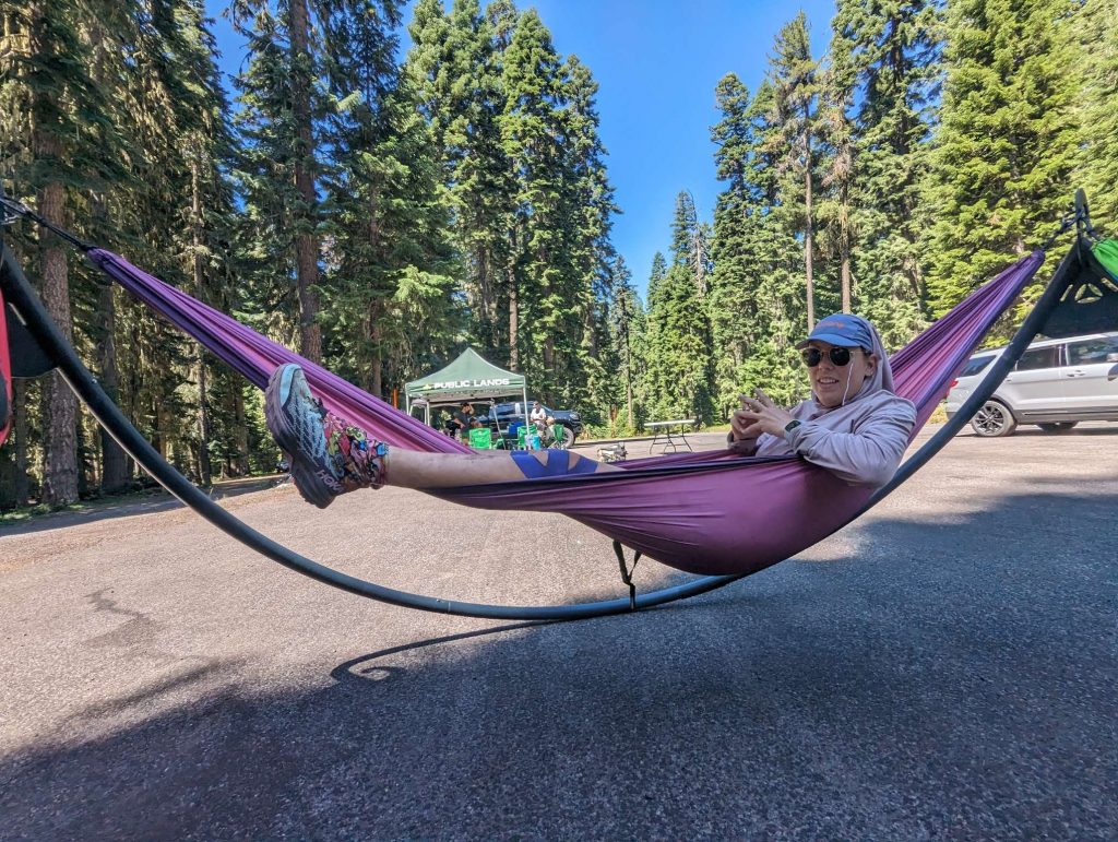 Am nächsten Tag klingelt der Wecker um 4 Uhr. Ich habe wieder ohne Regencover geschlafen und nachts die Sterne beobachtet und einige Sternschnuppen gesehen. Das werde ich zu Hause auf jeden Fall vermissen! Heute haben wir 35km bis zum Campground in Crater Lake National Park vor uns, wo wir ein Paket haben, duschen, Wäsche waschen und laden wollen. Es geht fast nur bergab, aber der Tag ist schwer für mich. Meine Hüfte drückte in den letzten Tagen etwas, aber heute tut sie wirklich weh. Jede halbe Stunde muss ich Pause machen. Ich quäle mich durch den Tag und komme endlich am Parkplatz an. Von dort müsste man noch weiter auf der Straße laufen, aber Clumsy hat sich schon um eine Mitfahrgelegenheit gekümmert. Das freut mich sehr. Auf dem Campingplatz sind sehr viele Wanderer. Ich weiß nicht genau, warum, aber je weiter wir nördlich sind desto unfreundlicher die PCTler. Es gibt einige etablierte Gruppen. Die wollen vielleicht eher für sich bleiben. Manche sind vielleicht auch in einem Tief. Die Atmosphäre unter den Wanderern hat sich jedenfalls ganz schön verändert. Und mir fällt es heute besonders auf, weil ich ziemlich erschöpft bin und mir die vielen Menschen zu viel sind. Zumindest treffen wir Salty und Corpsi wieder und essen nach unseren Aufgaben gemeinsam im Restaurant. Erst 22 Uhr geht es in die Zelte. Aber morgen können wir ja ausschlafen.