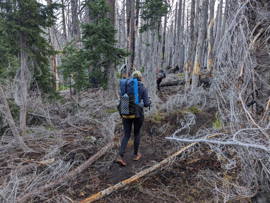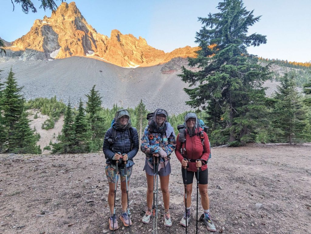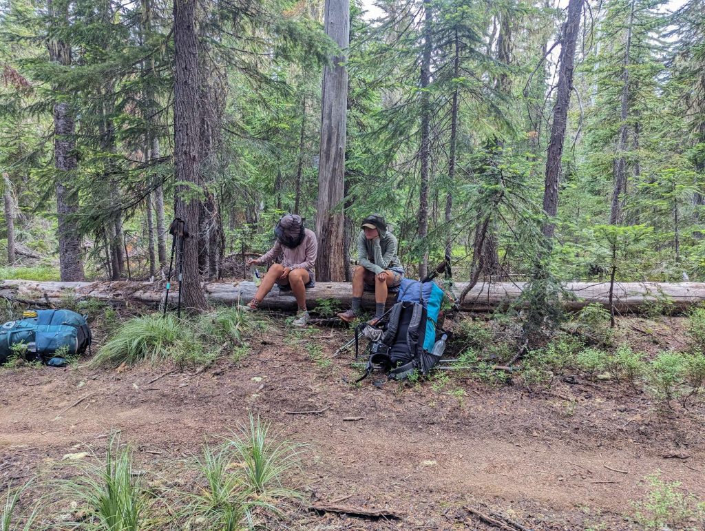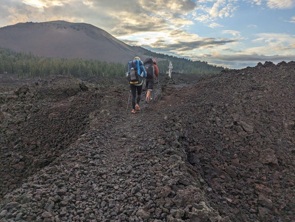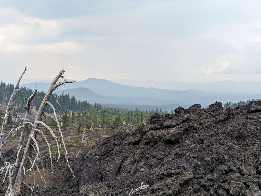 Nach unseren kleinen Pause starten wir in einen neuen Staat: Oregon. Wir gehen wieder nordwärts – Richtung Kanada! Es geht durch Wälder und über Lavafelder. Wir werden erstmals mit Feuer und Regen konfrontiert. Nach der extremen Hitze wird es etwas kühler und damit wird auch Kondensat im Zelt ein Thema. Meistens wandern wir zu dritt als Frauenrunde. Es scheint mir als ob unsere männlichen Mitwanderer die Frauenpower nicht aushalten 🙂