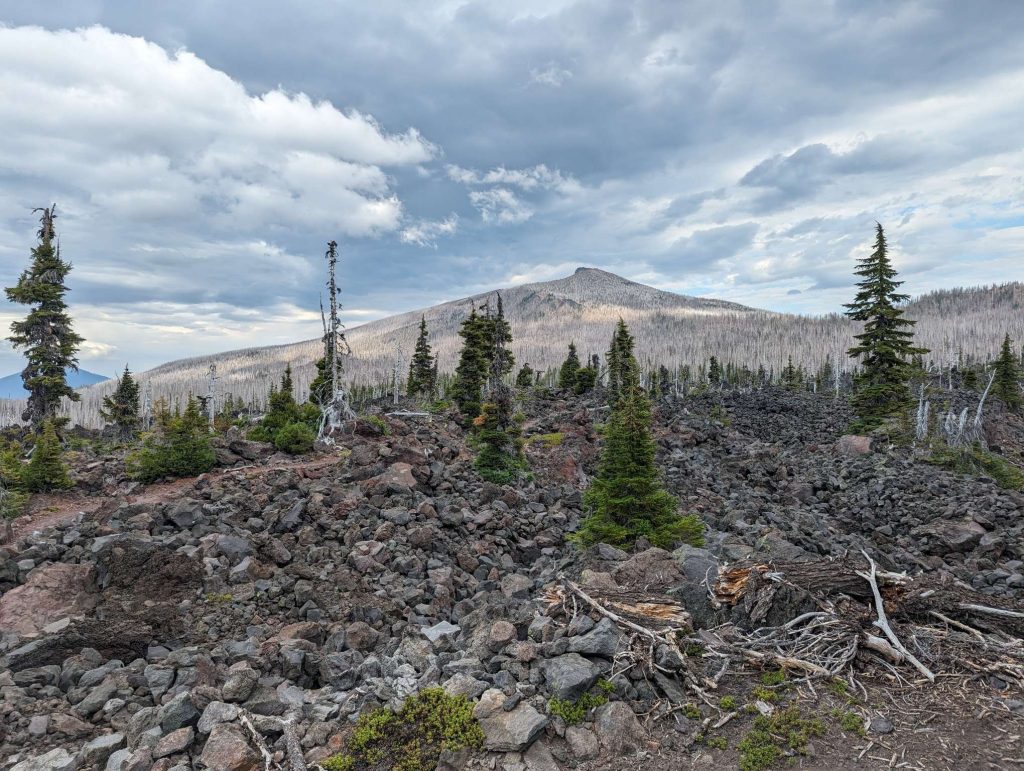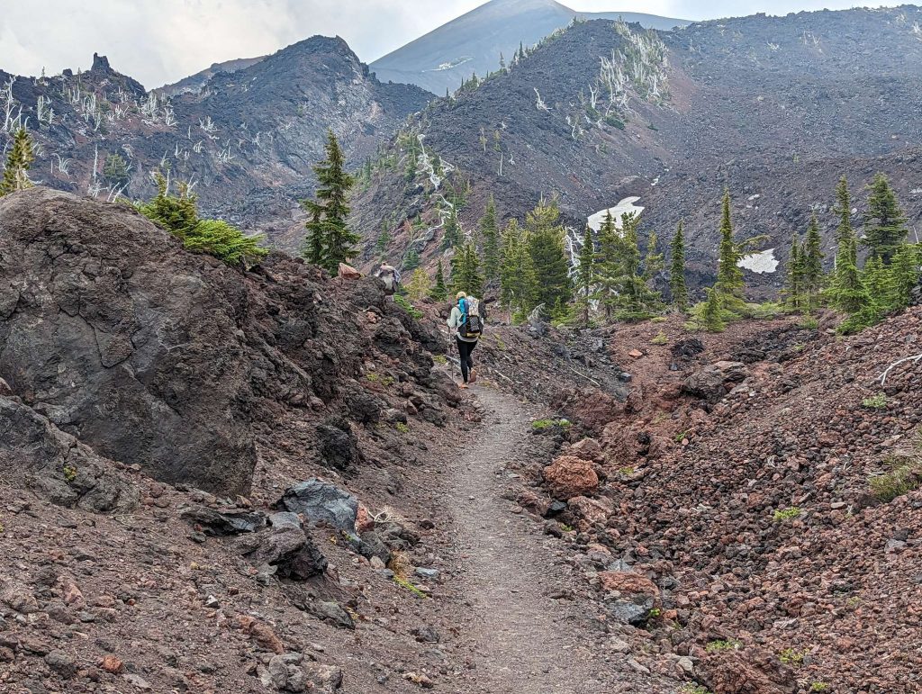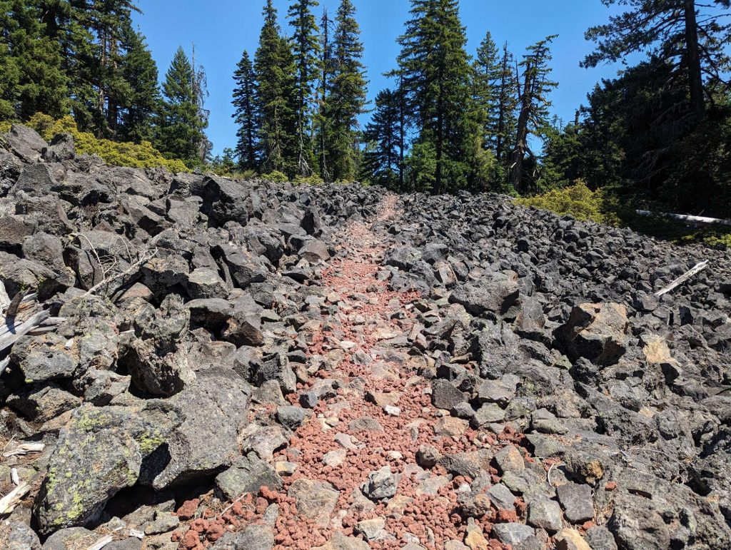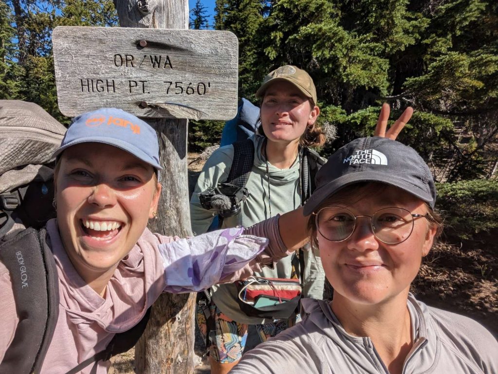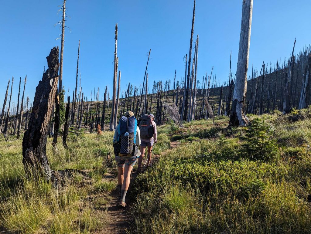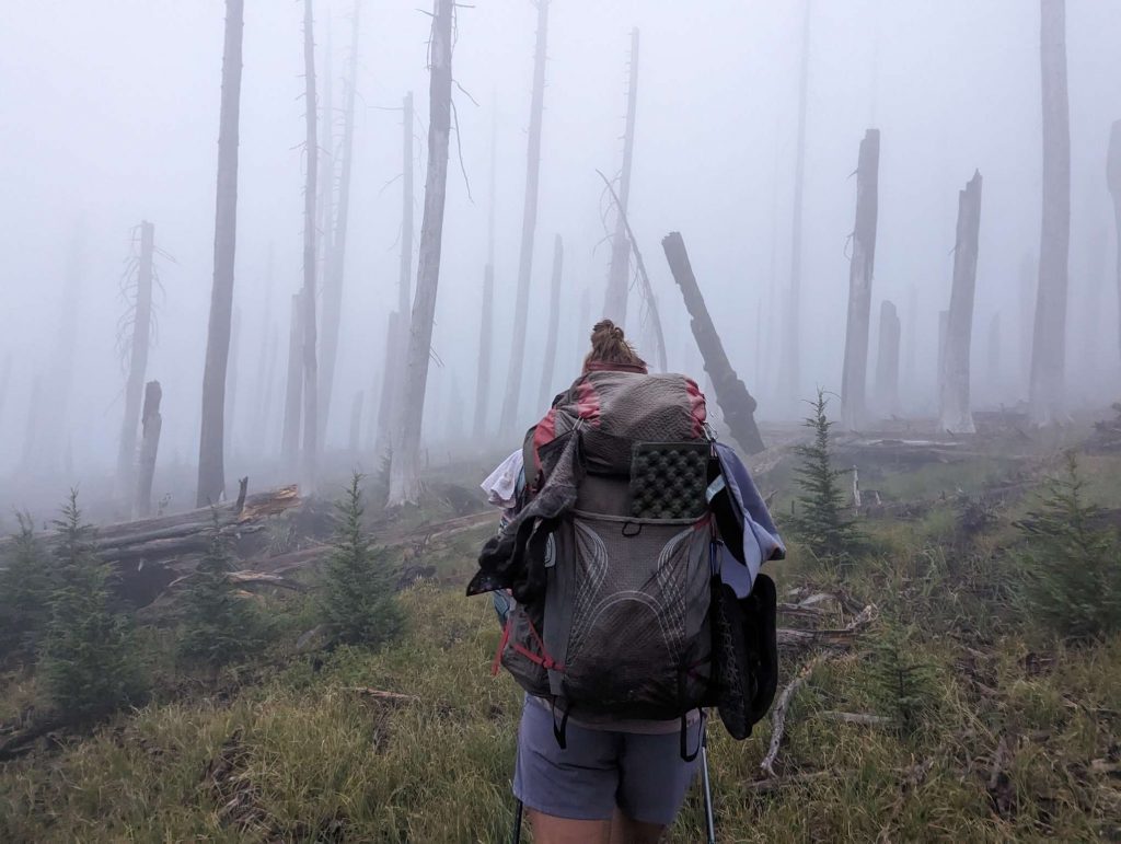 Nach unseren kleinen Pause starten wir in einen neuen Staat: Oregon. Wir gehen wieder nordwärts – Richtung Kanada! Es geht durch Wälder und über Lavafelder. Wir werden erstmals mit Feuer und Regen konfrontiert. Nach der extremen Hitze wird es etwas kühler und damit wird auch Kondensat im Zelt ein Thema. Meistens wandern wir zu dritt als Frauenrunde. Es scheint mir als ob unsere männlichen Mitwanderer die Frauenpower nicht aushalten 🙂