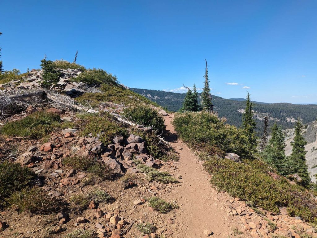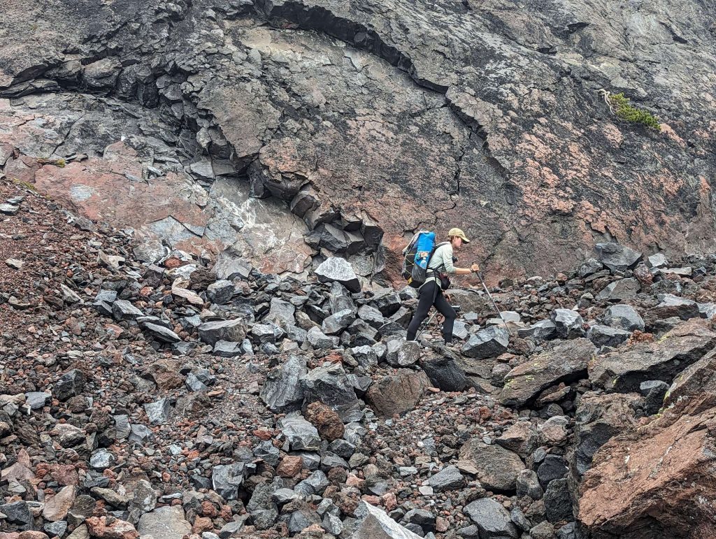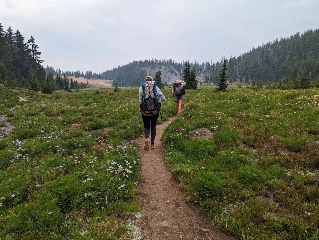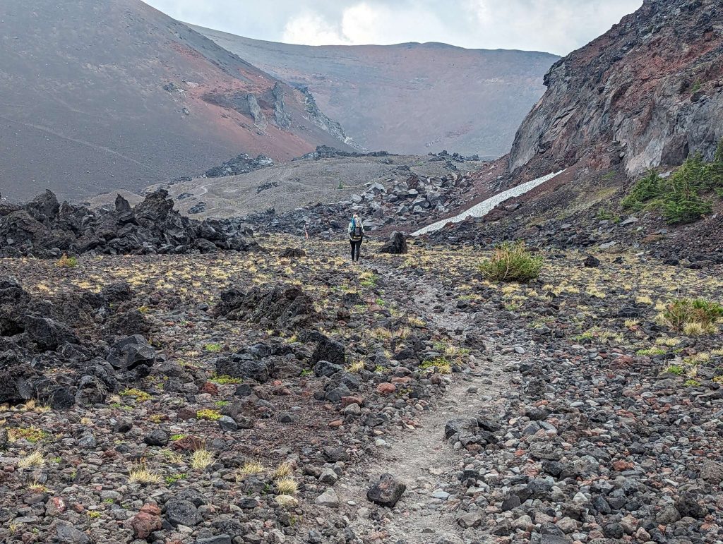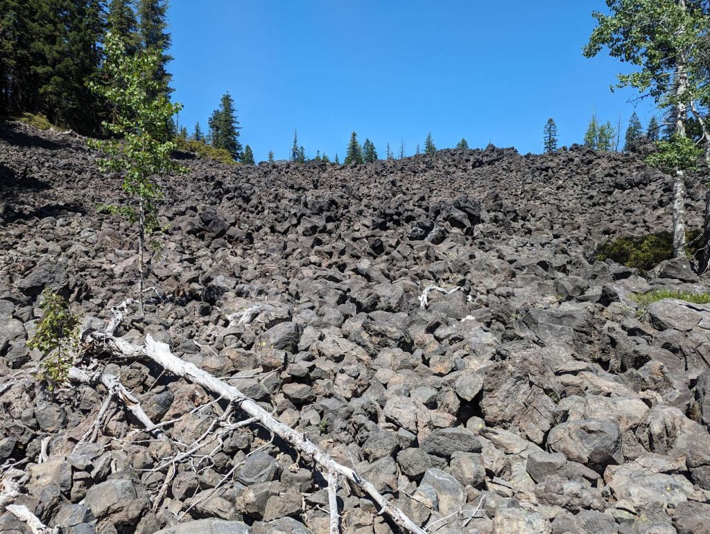 Nach unseren kleinen Pause starten wir in einen neuen Staat: Oregon. Wir gehen wieder nordwärts – Richtung Kanada! Es geht durch Wälder und über Lavafelder. Wir werden erstmals mit Feuer und Regen konfrontiert. Nach der extremen Hitze wird es etwas kühler und damit wird auch Kondensat im Zelt ein Thema. Meistens wandern wir zu dritt als Frauenrunde. Es scheint mir als ob unsere männlichen Mitwanderer die Frauenpower nicht aushalten 🙂