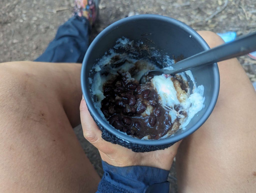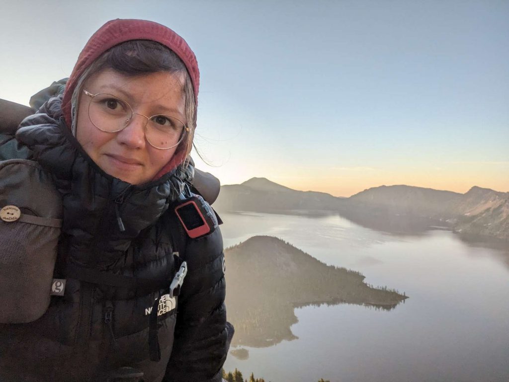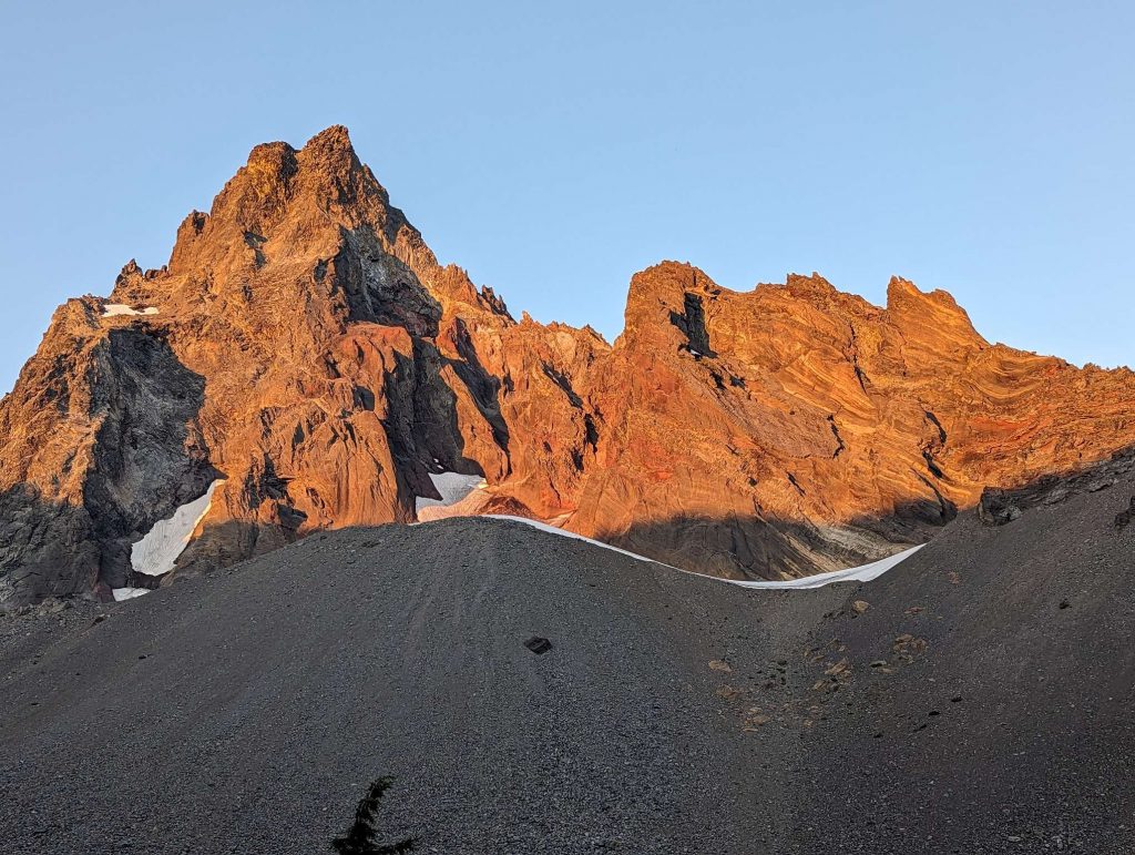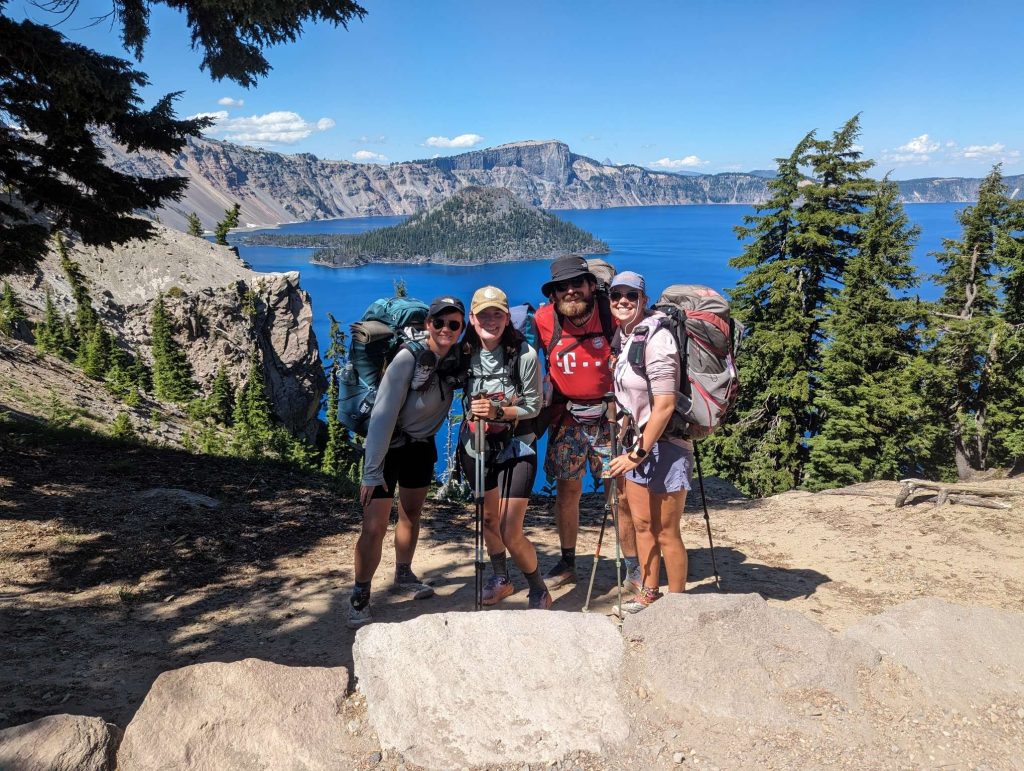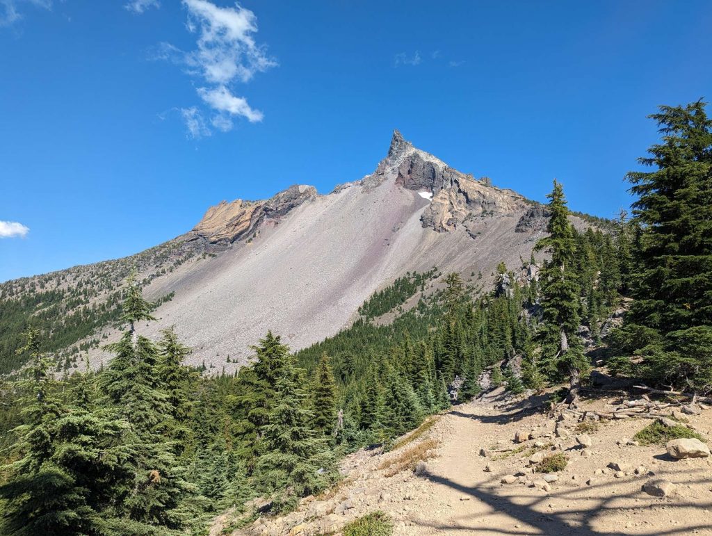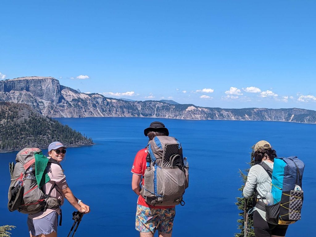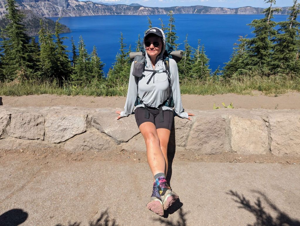 3 Uhr klingelt der Wecker. Wir packen im Licht unserer Stirnlampen zusammen und machen uns auf den Weg auf den Watchman. Von hier wollen wir den Sonnenaufgang über dem See sehen. Die 10km laufen wir flink im Mondlicht und erreichen als erste Gruppe den Aussichtspunkt. Wir setzen uns in die erste Reihe auf die Absperrung und packen uns gut ein. Es ist ziemlich kalt. Eine Stunde später kuckt die Sonne über den Horizont. Mittlerweile sind noch 2 andere Gruppen dazugekommen, alles PCTler. Unter anderem auch Riverdance, der auch ein unangenehmer Zeitgenosse ist. Wir 3 Mädels sind ihm zu laut und wagen es, manchmal vor ihm anzukommen… Grumpy hätte wohl besser als Trailname gepasst. Wenn er uns morgens überholt, grüßt er nicht mal. Sobald die Sonne da ist, hetzen alle los. Auch wir haben 40km vor uns, aber gehen etwas gemütlicher los. Am Vormittag habe ich richtig viel Energie und überhole alle. Diesmal schauen sie nur meiner Staubwolke nach. Nach der Mittagspause kämpfe ich allerdings. Ich glaube, ich habe zu viel Schokolade gegessen. Als ich bemerke, dass ich mein Bandana (ein Geschenk von Astrid) vergessen habe, schreibe ich eine Nachricht an Eduardo. Er hat natürlich wieder ausgeschlafen und ist hinter uns. Vielleicht hat er ja zufällig Lust, zum Aussichtspunkt zu gehen und nach meinem Bandana zu schauen. Unsere Zeltstelle ist sehr idyllisch mit Blick auf Mount Thielsen. Es sind alle anderen Hiker hier aus unserer Bubble (Ansammlung von Wanderern mit ähnlichem Tempo). Zusammen essen wir und nach den Planks gehts in die Schlafsäcke. Es war ein langer Tag.