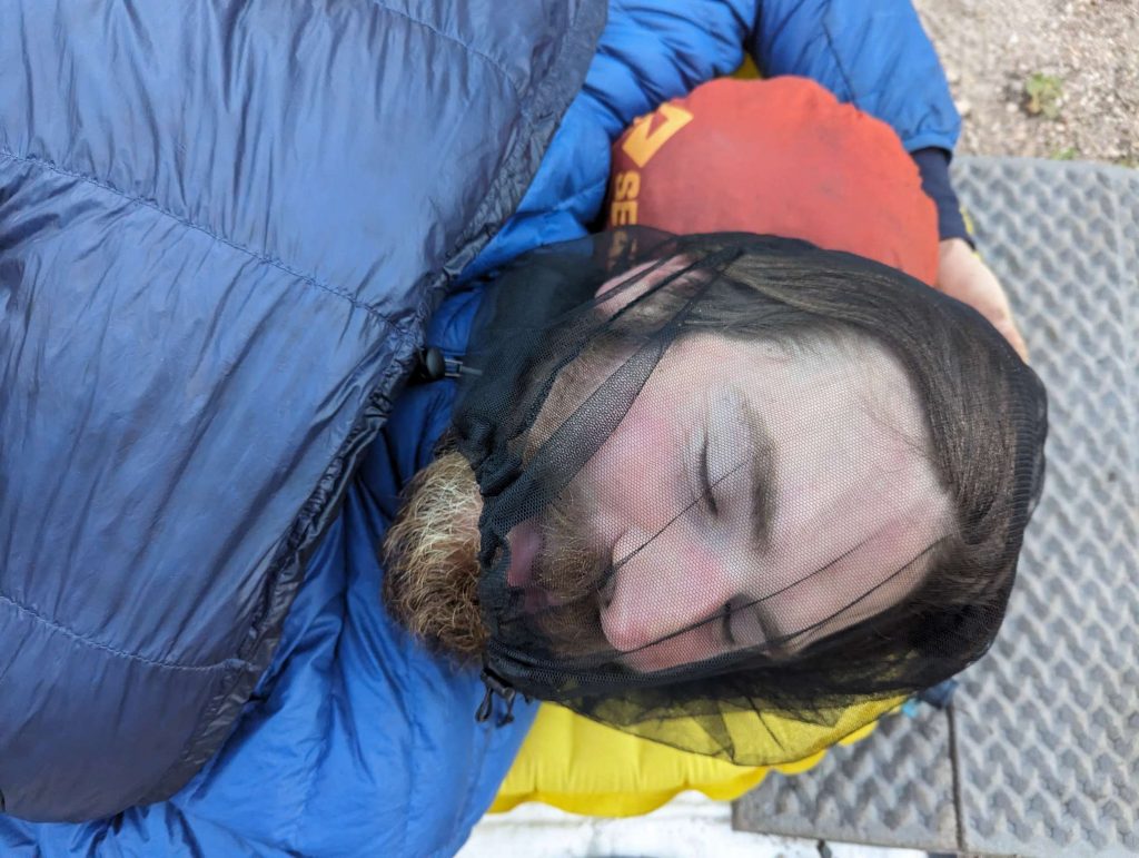 Die wenigen Kilometern vom Vortag wollen wir heute aufholen und laufen 5:30 Uhr los. Erster Stopp ist eine Wasserquelle, an der wir auch Eduardo vorfinden. Seinen Schlafplatz hat er mitten auf der Wiese gewählt. Da wird sein Schlafsack schön nass sein… Wir wecken ihn, aber wie immer winkt er ab und meint, er holt uns später ein. Wir kommen gut voran und machen Mittagspause an einem verlassenen Campingplatz am See und können an einem richtigen Tisch sitzen! Nachmittags treffen wir eine Ferienlagergruppe. Kurzerhand werden wir zu Vorführobjekten und beantworten Fragen. Warum wir durch ein komplettes Land wandern, wollen die Kinder wissen. Als wir antworten, dass es uns Spaß macht, ernten wir skeptische Blicke. Nach einer Weile erreichen wir einen weiteren verlassenen Campingplatz, an dem wir wieder an einem Tisch essen können. Wir fühlen uns richtig kultiviert, mal nicht im Dreck zu hocken. Außerdem gibt es Toiletten mit fließendem Wasser und sauberen, kostenlosen Duschen (!). Das nutze ich aus und dusche kurz. Anschließend lasse mich lufttrocknen, denn mein Handtuch habe ich aussortiert um Gewicht zu sparen. Die letzte Stunde nach der Pause ist mühsam. Nach knapp 40km erreichen wir eine Zeltstelle und kriechen kurz danach (nach den Planks) in die Schlafsäcke. Eduardo hat uns, wie erwartet, nicht eingeholt. Vielleicht morgen.