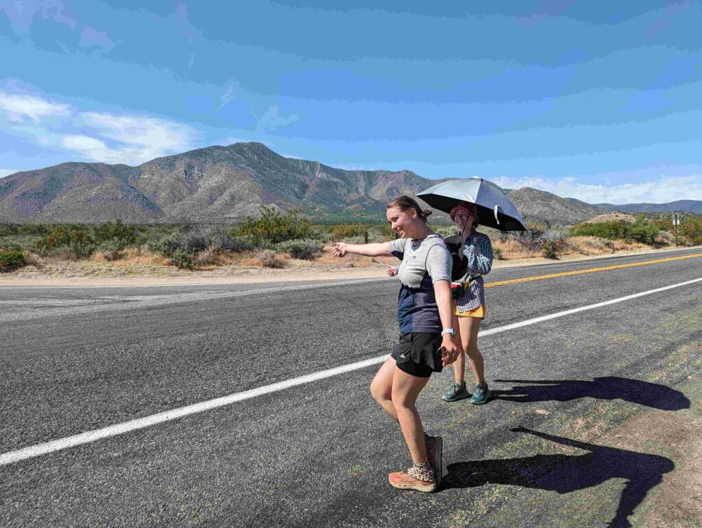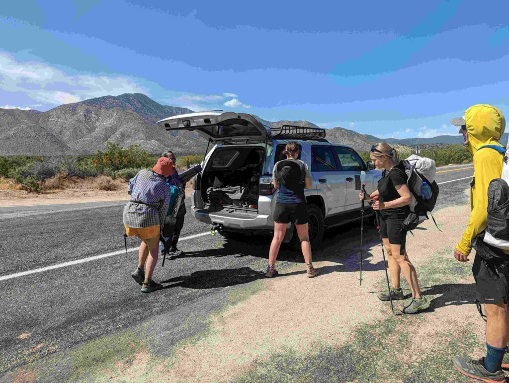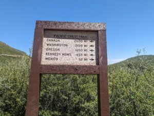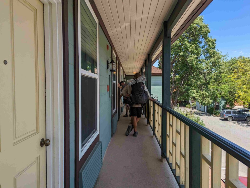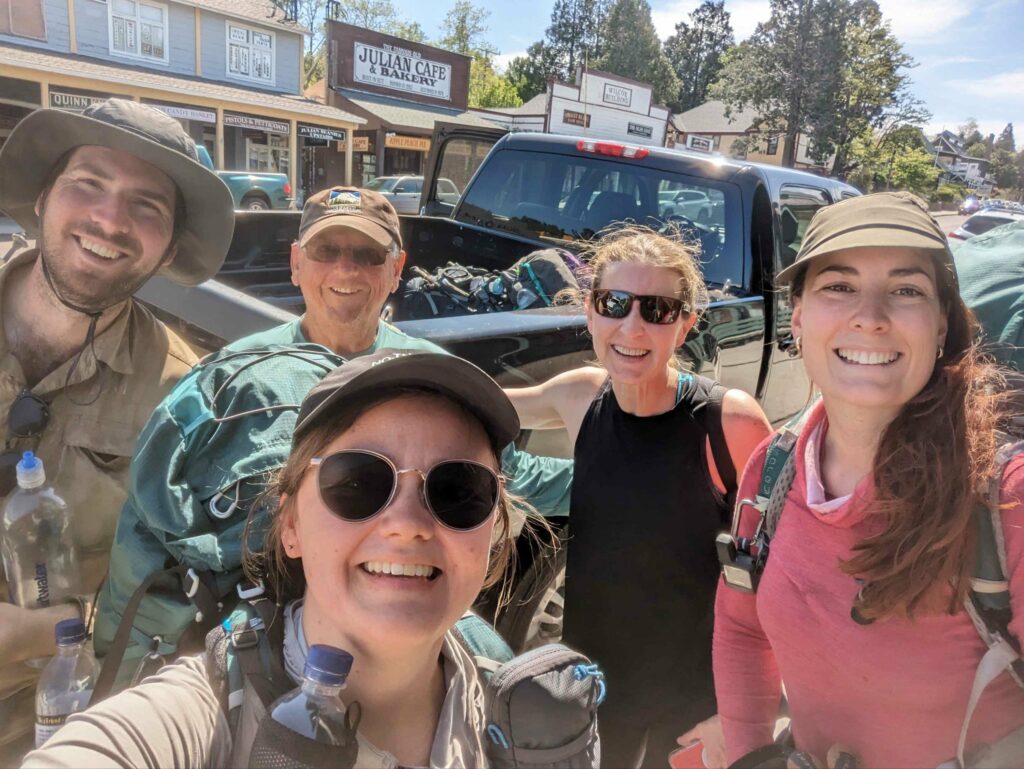 Am naechsten Tag schlafen wir aus und starten erst ca. 6:30 Uhr. Alle anderen sind schon 5:00 Uhr von der Wasserquelle losgelaufen und ziehen an uns vorbei. Heute ist ein besonderer Tag: Wir erreichen unsere erste Stadt! Juhu! Die 10km bis zum Highway schaffen wir bis ca. 9:30 Uhr. Es ist schon recht heiss und die Pflanzenwelt veraendert sich beim Abstieg in das Tal etwas. Am Ende laufe ich mit Manon und wir quatschen die ganze Zeit. Dann erreichen wir die beruehmte Bruecke (Scissors Crossing), die ich aus so vielen Youtube-Videos kenne. Hier zu sein ist unreal. Aber es ist ja real. Wir quatschen mit einigen Hikern, die dort im Schatten etwas ausharren, bevor sie sich an den Aufstieg machen. Trail Angels haben Obst und Wasser deponiert. Wie lieb! Danach klettern wir auf die Strasse und sehen einige andere, die ihr Glueck im trampen versuchen. Scheinbar seit einer halben Stunde recht erfolglos. Daisy jammert, dass es mental anstrengend ist und wiederholt bei jedem vorbeifahrenden Auto: „Rejection, rejection“. Sofia aus Daenemark ist sehr lustig und kommentiert alles satirisch. Ausserdem hat sich noch Jerek aus den Niederlanden und ein Paerchen aus der Schweiz eingefunden. Die wenigen Autos, die kommen, wollen uns stinkenden Hiker nicht. Ich sehe mit meinen Nudeln in den Haaren und meinen Flecken vom Abendessen auf dem Tshirt bestimmt auch abschreckend aus. Aber trotzdem klappt es: Ein Trail Angel kommt vorbei und nimmt 4 Leute mit. Danach haelt ein weiterer Truck und nimmt uns restliche 3 mit. Wir sind so gluecklich. Der Fahrer und seine Schwiegertochter sind auch gerade ein Stueck vom Trail gewandert und haben gerade Lauren (Bootsy), mit der wir auch einige Tage gewandert sind, zurueck zum Trail gebracht. Ein lustiger Zufall. Wir erfahren, dass Tiny Tim (Bootsys Freundin) verletzt ist und ein paar Tage aussetzen muss. So ein Mist! Sie ist hart im Nehmen, denn sie ist auf dem AT mit einem gebrochenen Bein gewandert! Wir hoffen, dass es fuer sie gut ausgeht. Nach einer halbstuendigen Fahrt und einigen Trailnews erreichen wir endlich die Stadt. JULIAN!