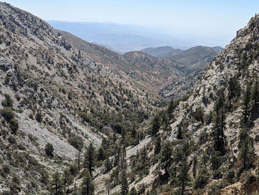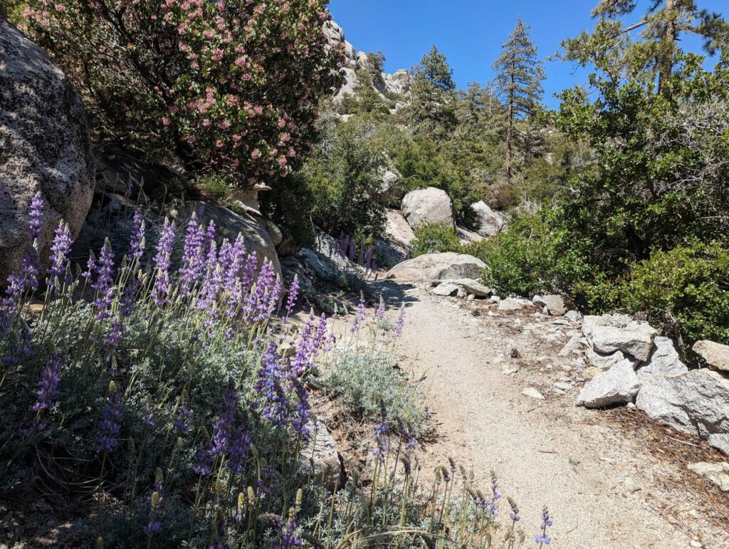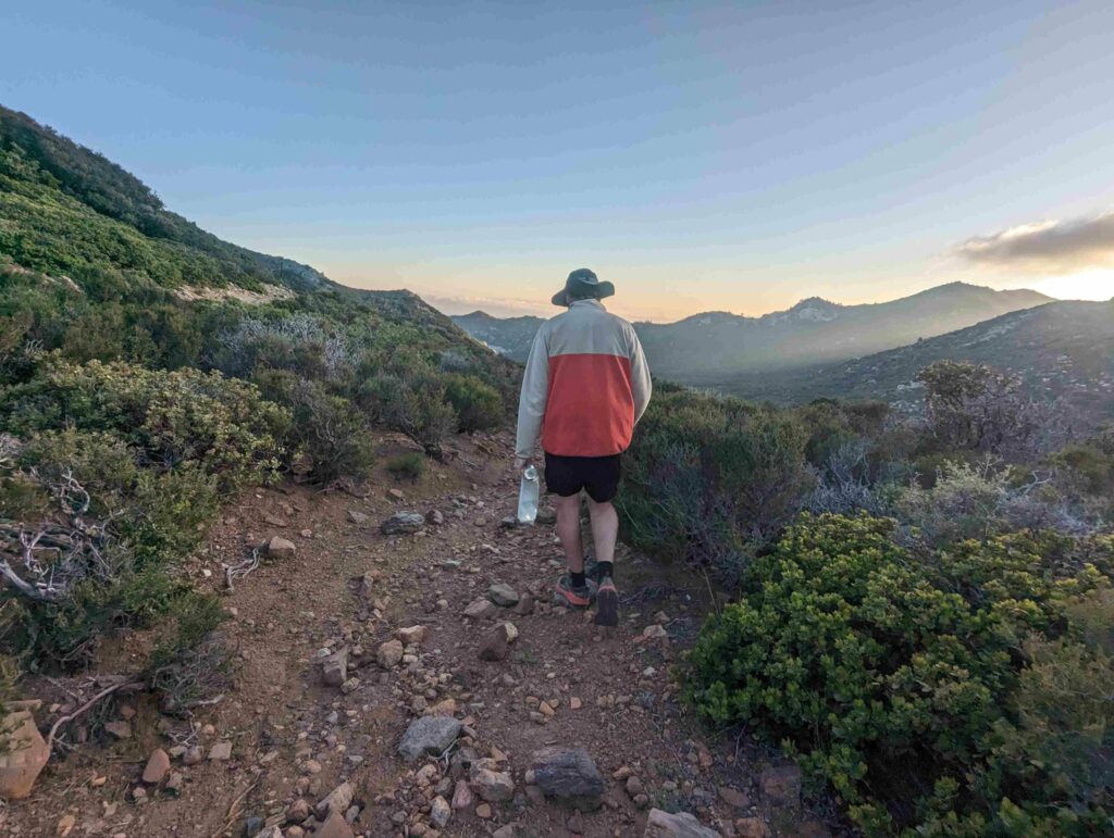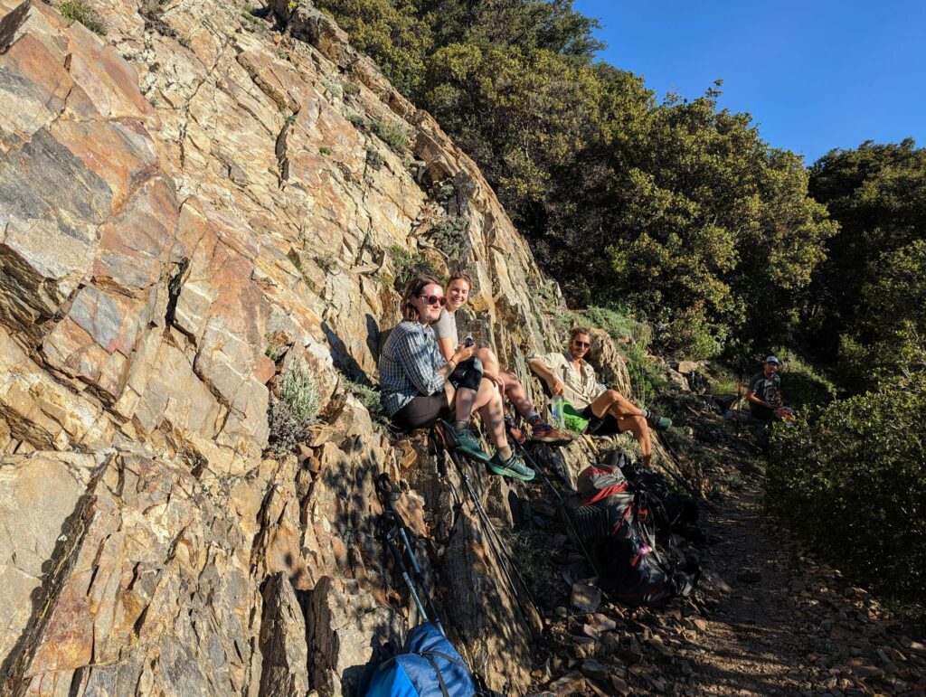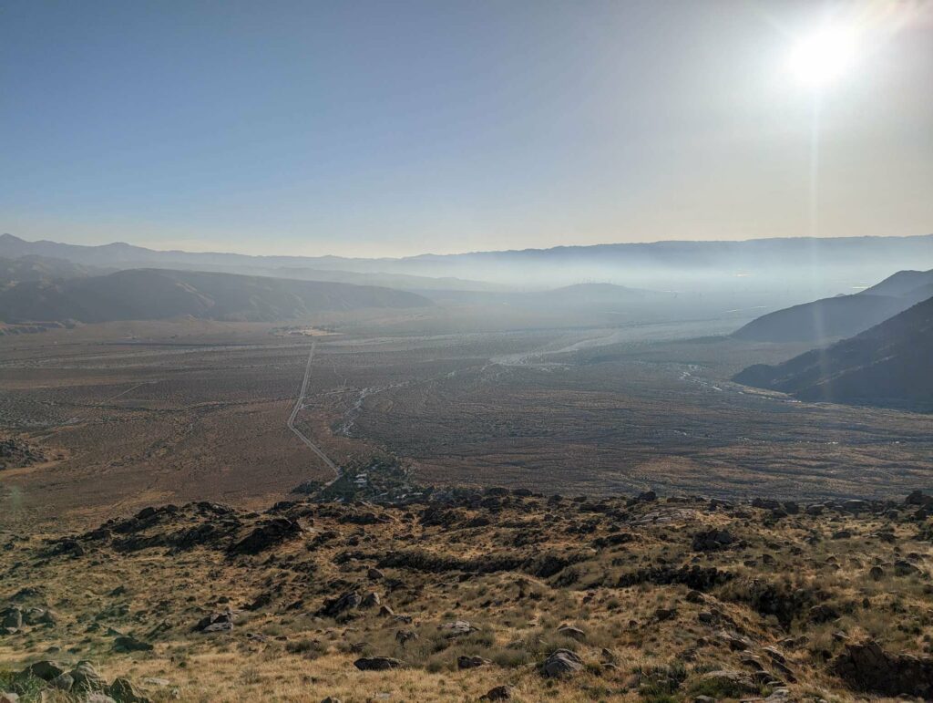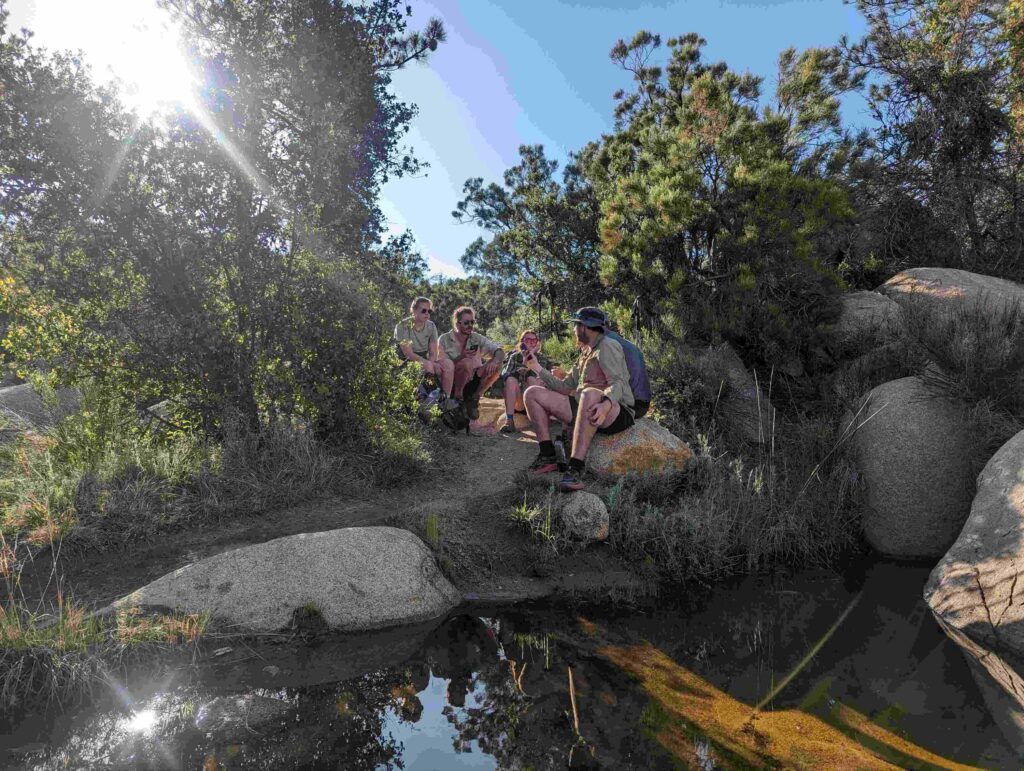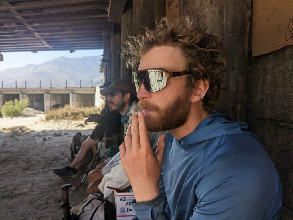 Die Abfahrt aus Idyllwild verläuft stressig. In der Bibiothek bin ich vertieft in meinen Blogbeitrag und übersehe die Anrufe der Gruppe. Als ich endlich mein Handy checke, packe ich alles überhastet ein und sprinte los. Zum Glück sind sie nicht so weit entfernt und waren bisher noch nicht erfolgreich, eine Mitfahrgelegenheit zu bekommen. Dann halten innerhalb kurzer Zeit gleich 2 Autos und wir kommen alle zurück zum Trail. Der Plan ist straff. In 2 Tagen so nah wie möglich an den San Jacinto kommen und am dritten Tag aufsteigen. Da wir erst spät loslaufen, endet der Tag heute im Dunkeln nach etwa 12km. Ich bin diesmal schon als 2. im Camp.