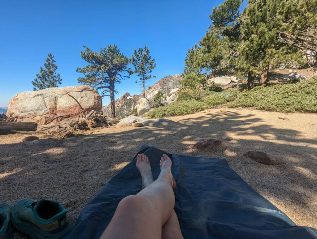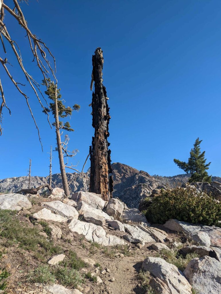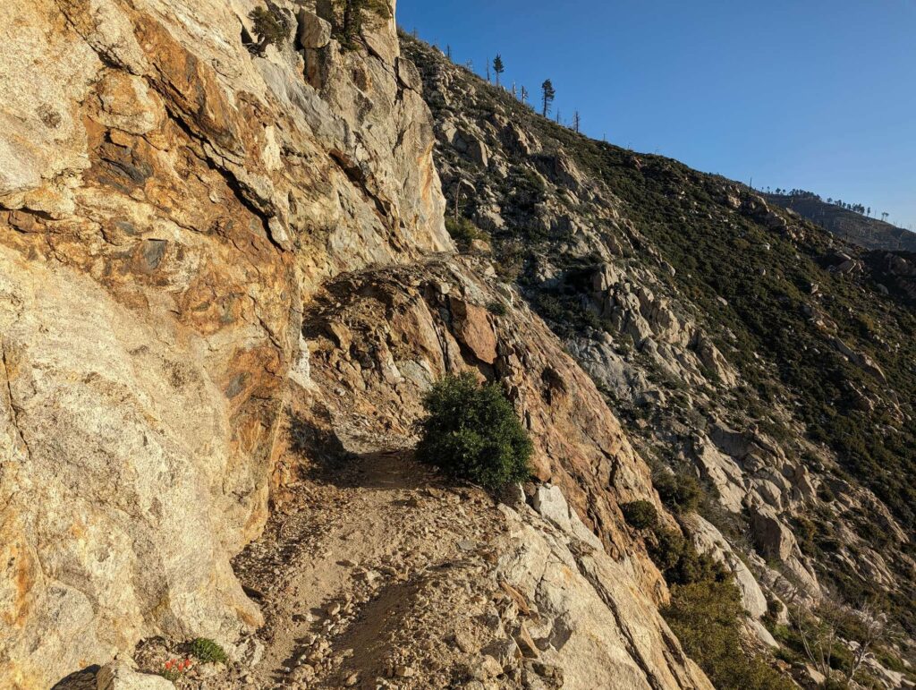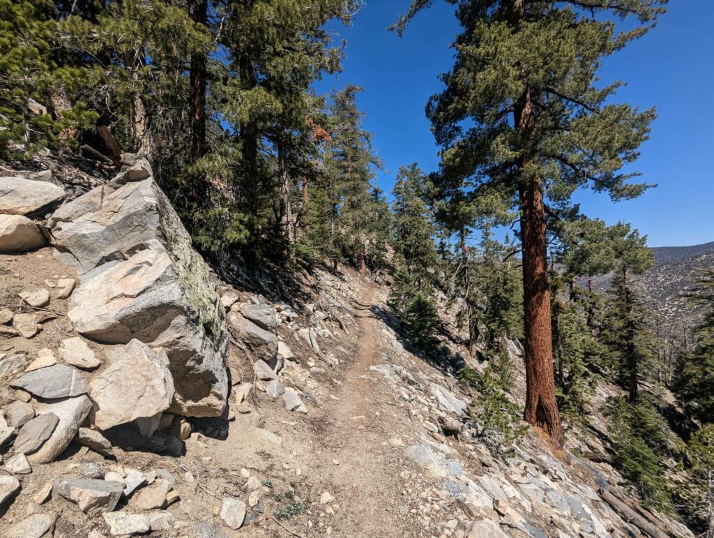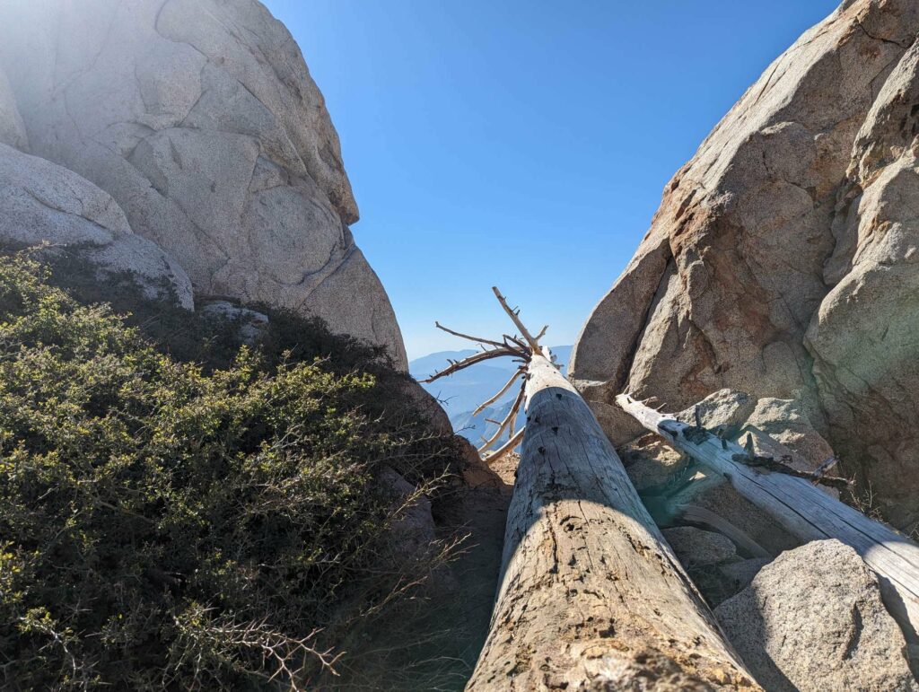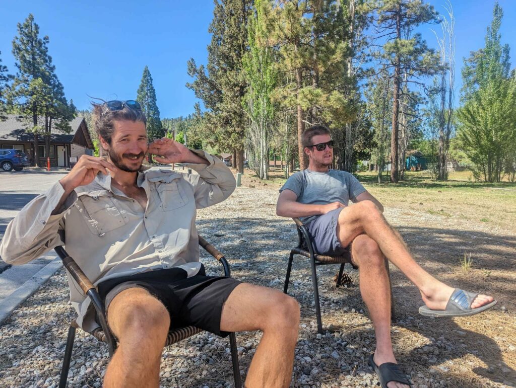 Die Abfahrt aus Idyllwild verläuft stressig. In der Bibiothek bin ich vertieft in meinen Blogbeitrag und übersehe die Anrufe der Gruppe. Als ich endlich mein Handy checke, packe ich alles überhastet ein und sprinte los. Zum Glück sind sie nicht so weit entfernt und waren bisher noch nicht erfolgreich, eine Mitfahrgelegenheit zu bekommen. Dann halten innerhalb kurzer Zeit gleich 2 Autos und wir kommen alle zurück zum Trail. Der Plan ist straff. In 2 Tagen so nah wie möglich an den San Jacinto kommen und am dritten Tag aufsteigen. Da wir erst spät loslaufen, endet der Tag heute im Dunkeln nach etwa 12km. Ich bin diesmal schon als 2. im Camp.