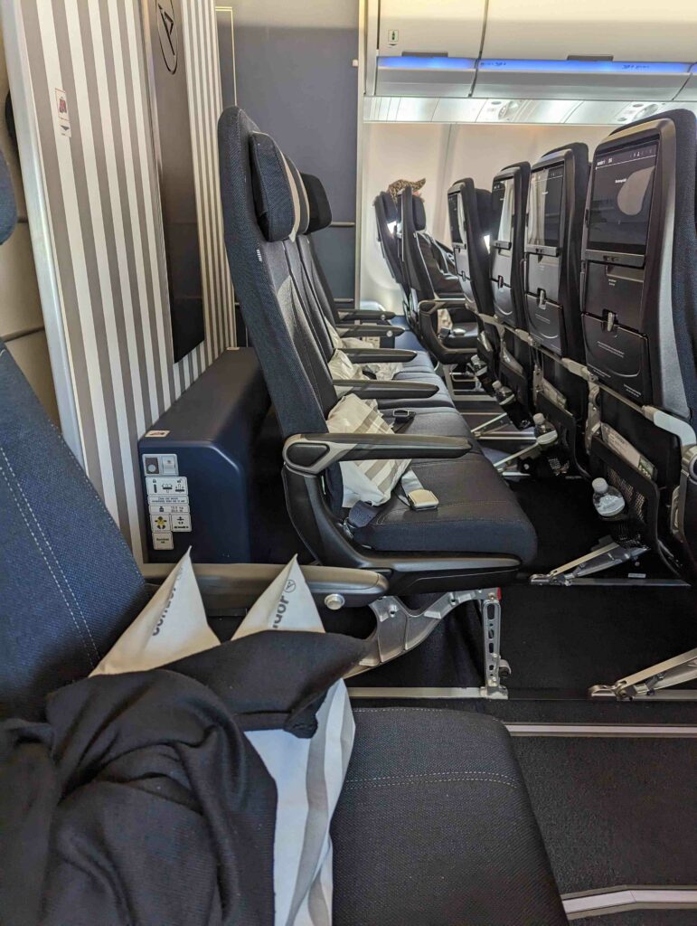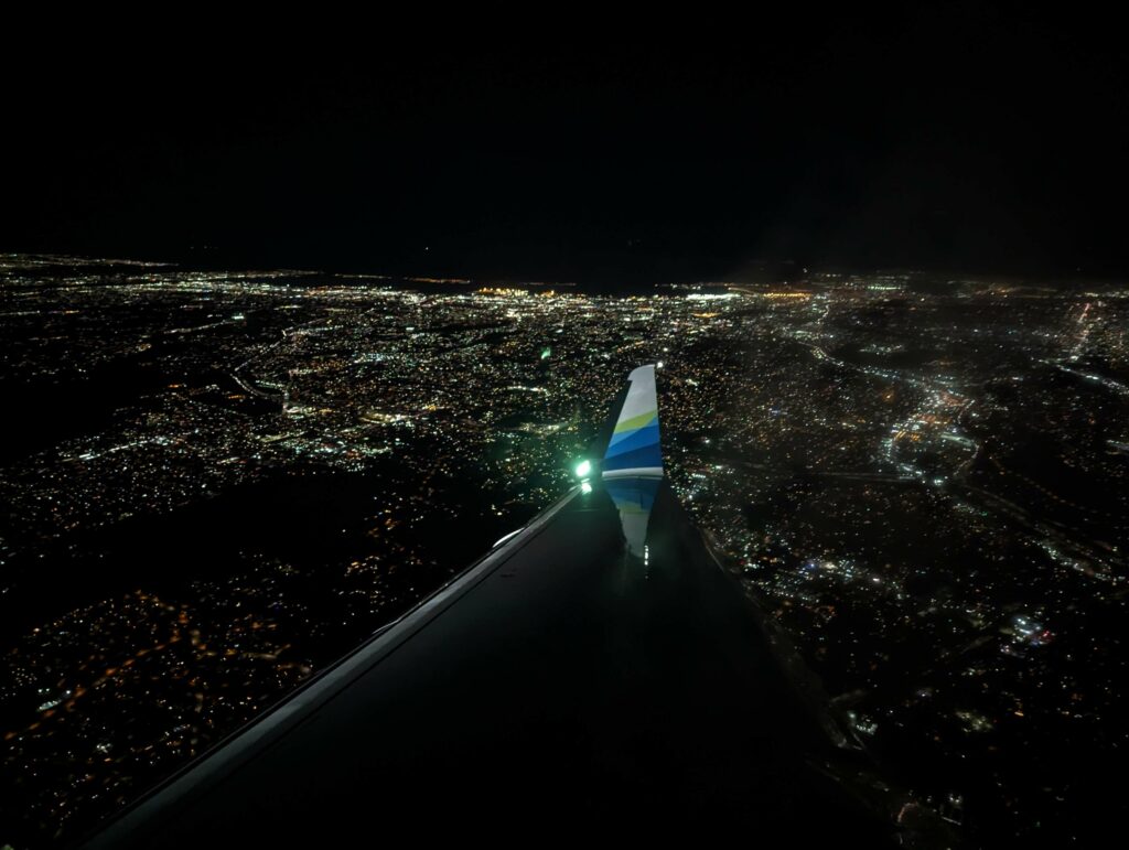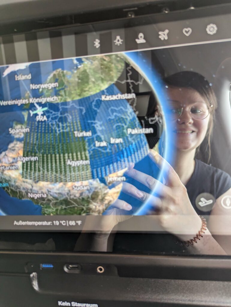 Am Samstag geht es nach einem letzten leckeren Frühstück mit gutem Brot (werde ich vermissen) los. Da mein Rucksack in einer Schutzhülle verpackt ist, soll er im Sperrgepäck transportiert werden. Komisch. Das Einchecken dauert ewig und ich muss mich ganz schön beeilen. Der Abschied von Cyril (werde ich auch sehr vermissen) muss kurz und schmerzlos ausfallen. Der Flug verläuft entspannt. Das Flugzeug ist nur zur Hälfte besetzt und ich habe eine Bankreihe für mich. Ganz schöne Verschwendung.